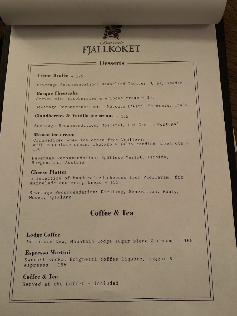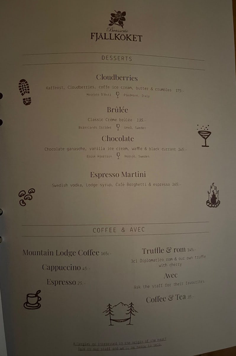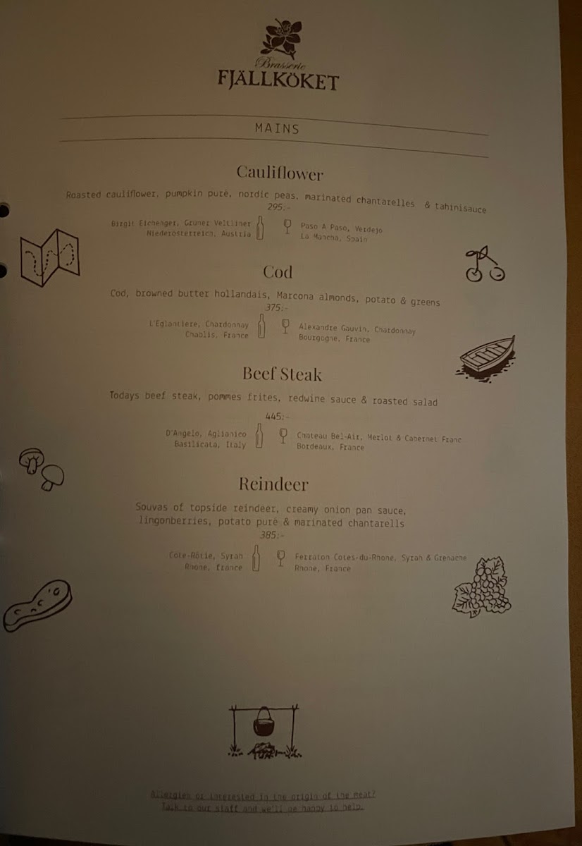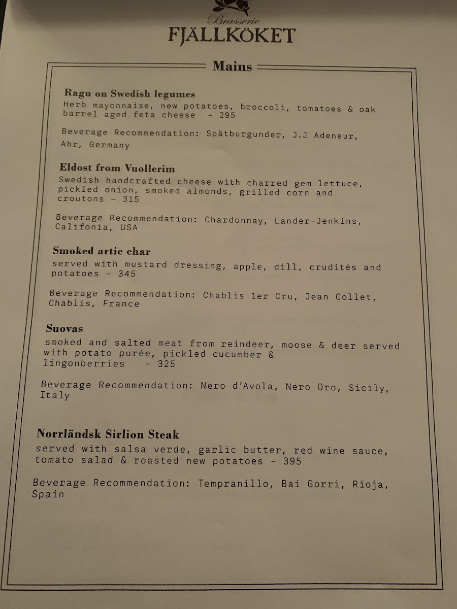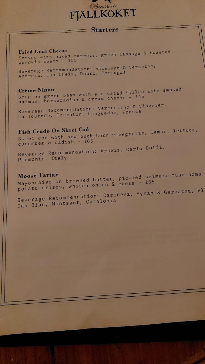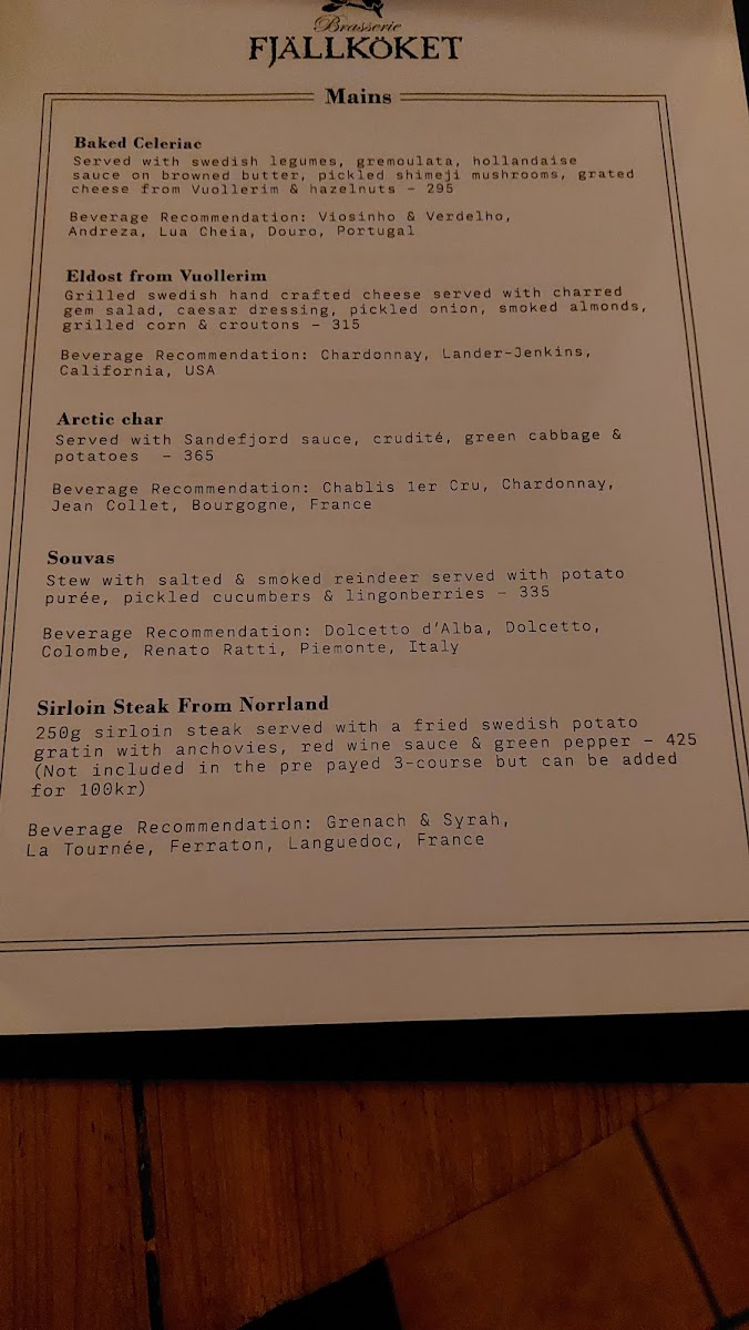 Brasserie Fjällköket Menu
